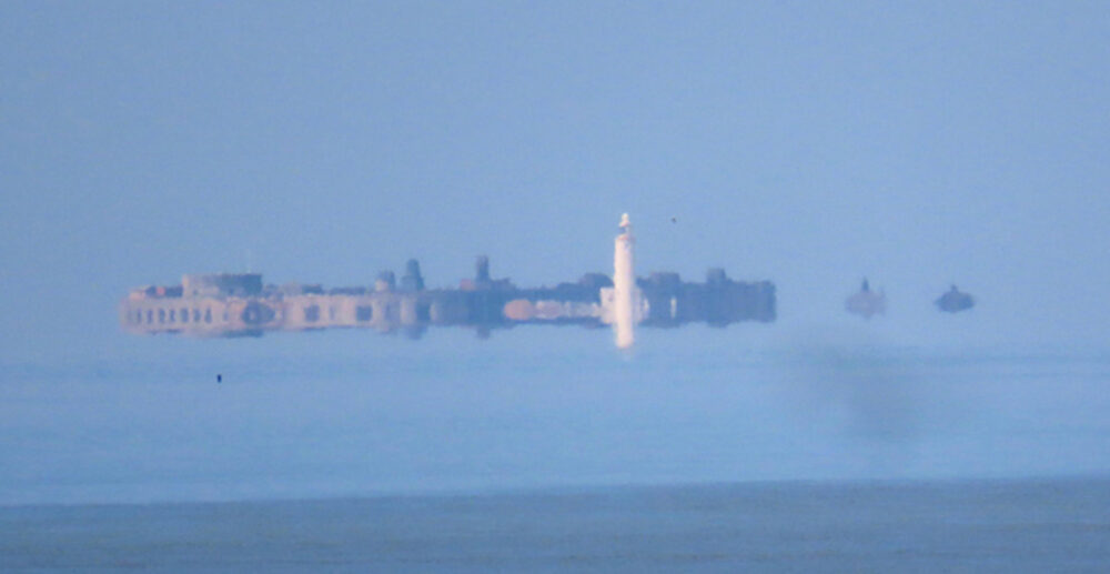 សីតុណ្ហភាពនៃបរិយាកាសមិនស្មើគ្នា បានធ្វើឱ្យរូបភាពរបស់ប្រាសាទដែលមានអាយុកាលជិត 500ឆ្នាំ នៅចក្រ ភពអង់គ្លេស មើលទៅហាក់បីដូចជាកំពុងអណ្ដែតក្នុងអាកាស លើផ្ទៃទឹកសមុទ្រ។