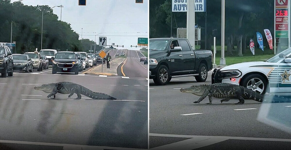 ហេតុការណ៍នេះ កើតឡើងនៅឯរដ្ឋហ្វ្លរីដា សហរដ្ឋអាមេរិក កាលពីថ្ងៃទី30 ខែមេសា ម៉ោងប្រមាណជា 13.30នាទី បណ្ដាអ្នកធ្វើដំណើរទាំងឡាយ ត្រូវជួបនឹងការស្ទះចរាចរណ៍យូរជិត 5នាទី នៅពេលមានការមកទស្សនកិច្ចរបស់ម្ចាស់ទឹកម្ចាស់ដី គឺ “សត្វក្រពើដ៏ធំ 1ក្បាល”។