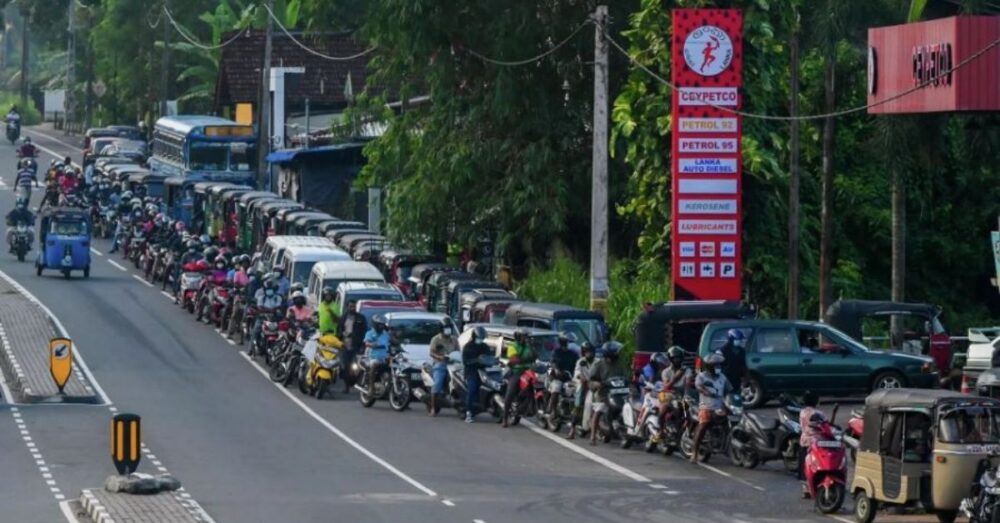 កាលពីថ្ងៃទី ១៦ ឧសភា មនុស្សរាប់រយនាក់បានឈរតម្រៀបជួរនៅខាងក្រៅស្ថានីយប្រេងសាំងនានានៅ ស្រីលង្កា រង់ចាំពី ៧ ទៅ ៨ ម៉ោង ដើម្បីបានចាក់ឥន្ធនៈ ប៉ុន្តែ ភាគច្រើនបានត្រលប់ទៅផ្ទះដោយ «ដៃទទេ»។