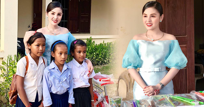 តារាស្រីរូបនេះបានបង្ហោះសារនៅលើហ្វេសប៊ុករបស់ខ្លួនថា ក្នុងនាមរូបនាងជាសិល្បការិនីម្នាក់ដែលត្រូវជាប់ពិន័យរយៈពេល1ឆ្នាំពីក្រសួងវប្បធម៌មិនឱ្យមានគ្រប់សកម្មភាពក្នុងវិស័យសិល្ប: អាស្រ័យហេតុនេះនាងមិនអាចបង្ហាញខ្លួនឬសម្តែងសកម្មភាពផ្សេងៗដែលពាក់ព័ន្ធនឹងសិល្ប:បានឡើយ ប៉ុន្ដែនាងក៏មិនបានអាក់អន់ចិត្ត ឬខឹងសម្បាអ្វីនោះទេ។ នាងបានបន្ដទៀតថា «នាងខ្ញុំបានបង្វែរការសម្តែងគ្រប់សកម្មភាពក្នុងសិល្ប: មកបង្កើតសកម្មភាពមនុស្សធម៏ដោយចេញពីចិត្ត ចេញពីបេះដូង ទោះបីតិចក្តីច្រើនក្តី ទៅតាមលទ្ធភាពដែលនាងខ្ញុំមាន និងអាចធ្វើបាន។ ដូចជាម្សិលមិញនេះ ថ្ងៃទី 1 ខែធ្នូ ឆ្នាំ 2017 នាងខ្ញុំបាននាំយកនូវអំណោយសម្ភារសិក្សាផ្សេងៗដូចជា កង់3គ្រឿង សៀវភៅ ប៊ិច ខ្មៅដៃ ជ័រលុប និង បន្ទាត់ ចំនួន490ឈុត(សម្រាប់490នាក់) ព្រមទាំងថវិកាបន្តិចបន្តួចទៅចែកជូនបងប្អូន និងលោកគ្រូ-អ្នកគ្រូដែលមានវត្តមាននៅសាលាបឋមសិក្សា សូរ ដែលស្ថិតនៅភូមិសូរថ្មី ឃុំអង្គរ ស្រុកមេសាង ខេត្តព្រៃវែង ដើម្បីជួយសម្រួលដល់ភាពខ្វះខាតរបស់ពួកគាត់»។