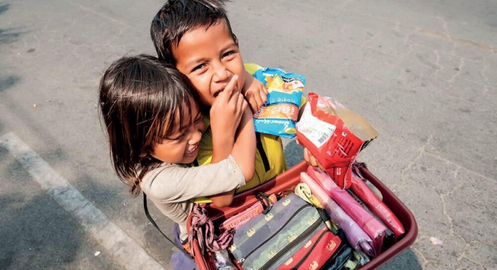 កុមារធ្វើការតាមដងផ្លូវជាច្រើននៅកម្ពុជាត្រូវបានគេរកឃើញថា ស្ថិតក្រោមការបង្ខិតបង្ខំរបស់មនុស្សធំ ព្រោះថា ផលប្រយោជន៍របស់ពួកគេផ្ទាល់ត្រូវបានប្រមូលដោយមនុស្សធំដែលអាចជាអាណាព្យាបាល ឬអ្នករើសកុមារទាំងអស់នោះទៅចិញ្ចឹមដើម្បីទទួលបានផលប្រយោជន៍។