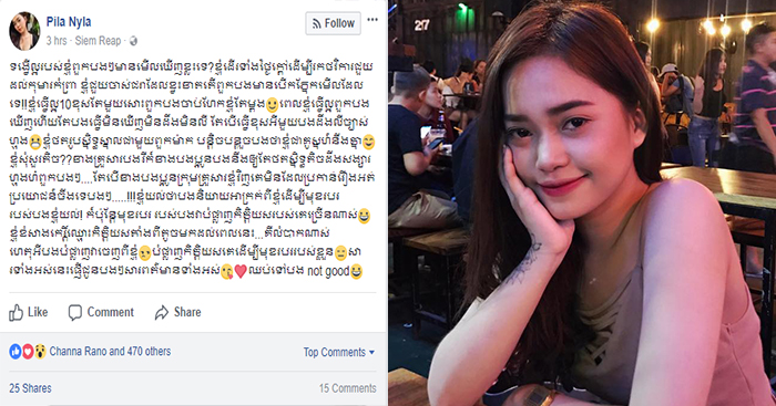 នាង វ៉ាន់ នីឡា បានរៀបរាប់ថា «ទង្វើល្អៗរបស់ខ្ញុំ ពួកបងៗមានមើលឃើញខ្លះទេ? ខ្ញុំដើរទាំងថ្ងៃក្ដៅដើម្បីរកថវិកាជួយដល់កុមារកំព្រា ខ្ញុំជួយមនុស្សចាស់ជរាដែលខ្វះខាត តើពួកបងមានបើកភ្នែកមើលដែរទេ?! ខ្ញុំធ្វើល្អ10 ខុសតែ1សោះពួកបងចាប់ហែកខ្ញុំតែម្ដង។ ពេលខ្ញុំធ្វើល្អ ពួកបងឃើញហើយ តែបងធ្វើមិនឃើញ មិនដឹង មិនឮ តែបើធ្វើខុសអីមួយ បងដឹង និងឮច្បាស់ហ្ម៉ង។ ខ្ញុំថតរូបស្និទ្ធស្នាលជាមួយពួកម៉ាកបន្តិចបន្តួច បងថាខ្ញុំជាគូស្នហ៍នឹងគ្នា»។