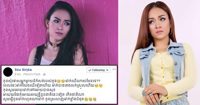 ទន្ទឹមនឹងនោះ កញ្ញា ស៊ូ ស៊ីរិកា បានសរសេរថា « កូនសុំទោសអ្នកម្តាយដ៍កំសត់របស់កូន..ម៉ាក់ឈឺណាស់មែនទេ??ពេលនេះម៉ាក់លែងឈឺទៀតហើយ ម៉ាក់បានគេងលក់ស្រួលហើយ…កូនសូមឱ្យម៉ាក់ទៅអោយបានសុខ អាយុវែងកុំឱ្យអាយុខ្លីដូចជាតិនេះទៀត កើតជាតិណា សូមធ្វើកូនម៉ាក់រហូតណាម៉ាក់ កូនស្រលាញ់ម៉ាក់ខ្លាំងបំផុត »។