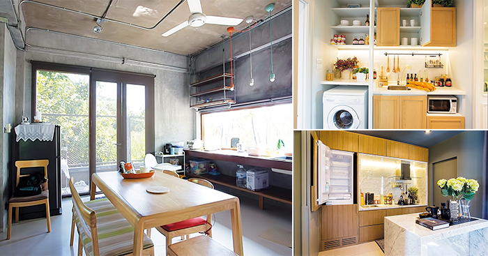 បន្ទប់ផ្ទះបាយខ្នាតតូចក្នុងបរិយាកាសពណ៌ឈើធម្មជាតិ មានទីធ្លាប្រើប្រាស់ត្រឹមតែបន្តិចបន្តួច តែក៏មានឧបករណ៍គ្រប់សម្រាប់រាល់ការប្រើការ។ ដោយចាប់ផ្ដើមពីការច្នៃម៉ូដឱ្យក្លាយជាបន្ទប់ផ្ទះបាយតែមួយជ្រុងជាប់ជញ្ជាំង ក្រាលឥដ្ឋការ៉ូពណ៌ឈើធម្មជាតិ។ ខាងក្រោមតុដាក់ម៉ាស៊ីនបោកខោអាវខ្នាតមីនីសន្សំសំចៃទីកន្លែង អាងលាងចានតូចមួយ និងឆ្នាំងម៉ៃក្រូវេហ្វអាចដាក់នៅលើតុនៅក្នុងផ្ទះបាយក៏បាន។ ធ្វើបង្កាន់ដៃដែកអីុណុកជាប់ជញ្ជាំងទុកព្យួរឧបករណ៍ផ្ទះបាយដែលត្រូវប្រើជាប្រចាំ គ្រឿងបន្ថែមរសជាតិដាក់តម្រៀបជាជួរស្រេច និងទូជាប់ជញ្ជាំងសម្រាប់ទុកដាក់ចានក្បាន។