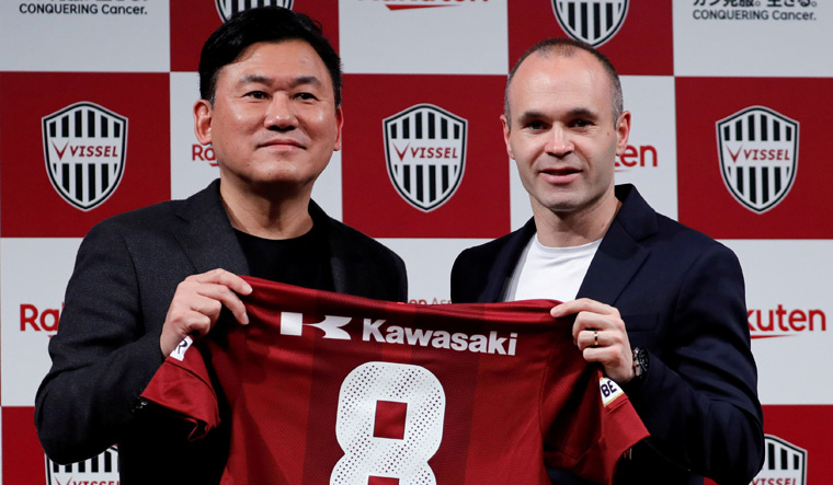 ខ្សែបម្រើវ័យ 34ឆ្នាំរូបនេះ បានបង្ហាញខ្លួននៅក្នុងសន្និសីទសារព័ត៌មានមួយនៅឯសណ្ឋាគារមួយក្នុងទីក្រុងតូក្យូ កាលពីថ្ងៃព្រហស្បតិ៍ រួមជាមួយនឹងលោក Hiroshi Mikitani ដែលជាម្ចាស់ក្លិប Kobe។ លោក Mikitani បានឱ្យដឹងថា៖ «ខ្ញុំពិតជារីករាយណាស់ក្នុងការប្រកាសថា Andres Iniesta នឹងចុះហត្ថលេខាលេងជាមួយនឹងក្លិប Vissel Kobe ក្រោយពីការបញ្ចប់អាជីពជាប្រវត្តិសាស្ត្ររបស់គេនៅឯក្លិប Barcelona។ Iniesta បានចុះហត្ថលេខាលើកិច្ចសន្យារបស់គេ ហើយបាននិយាយតាមរយៈអ្នកបកប្រែម្នាក់។ លក្ខខណ្ឌផ្សេងៗនៃកិច្ចសន្យានេះ ត្រូវបានបិទជិត ប៉ុន្តែ បណ្តាញសារព័ត៌មានរបស់ជប៉ុន បានចេញផ្សាយថា រូបគេនឹងទទួលបានចំណូល 30លានដុល្លារអាមេរិក ក្នុងរយៈពេល 1ឆ្នាំពីកិច្ចសន្យារយៈពេល3ឆ្នាំរបស់គេ។ Iniesta បានឱ្យដឹងថា៖ «ខ្ញុំទទួលបានសំណើជាច្រើន ក្លិបផ្សេងទៀតបានបង្ហាញពីការចាប់អារម្មណ៍លើខ្ញុំ»។