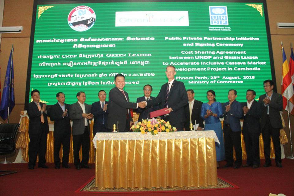 ដើម្បីអភិវឌ្ឍវិស័យដំឡូងមីនៅកម្ពុជាឱ្យកាន់តែមានភាពរីកចម្រើនឡើង ក្រសួងពាណិជ្ជកម្មបានសហការជាមួយក្រុមហ៊ុន Green Leader Holding Group និងអង្គការ UNDP បញ្ចេញទឹកប្រាក់សរុបចំនួន 2លានដុល្លារ សម្រាប់ការអភិវឌ្ឍរយៈពេល 3ឆ្នាំ 5ខែ គិតចាប់ពីខែសីហា ឆ្នាំ2018 ដល់ឆ្នាំ2021។