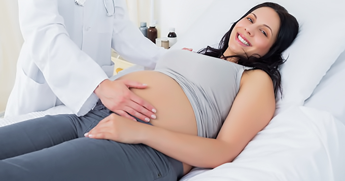 4. ពិនិត្យមើលទំហំ និងរូបរាងរបស់ស្បូនដោយការពិនិត្យក្បាលពោះ។