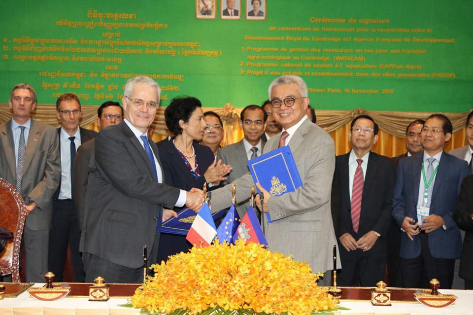 1-ឥណទានសម្បទានចំនួន 55លានអឺរ៉ូ សម្រាប់កម្មវិធីគ្រប់គ្រងធនធានទឹក និងការផ្លាស់ប្តូរវិស័យកសិកម្មសម្រាប់ប្រទេសកម្ពុជា ដំណាក់កាលទី1។ កម្មវិធីនេះមានទិសដៅអនុវត្តបន្តពីគម្រោងដែលផ្តល់ឥណទានលើកដំបូងរបស់ AFD ដែលមានទិសដៅក្នុងការបន្តពង្រីកការងារស្តារព្រែក និងសាងសង់ហេដ្ឋារចនាសម្ព័ន្ធធារាសាស្ត្រ ប្រព័ន្ធស្រោចស្រព និងប្រព័ន្ធរំដោះទឹកនៅក្នុងខេត្តគោលដៅ រួមមាន ខេត្តកណ្តាល បាត់ដំបង ព្រះវិហារ សៀមរាប និងខេត្តកំពង់ធំ ដែលអាចស្រោចស្រពផ្ទៃដីកសិកម្មបានប្រមាណជាង 20,000ហិកតា។