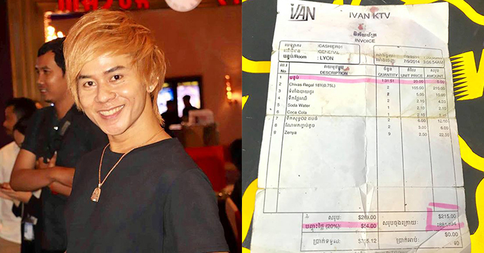 ជានាយកក្រុមហ៊ុននាំចូល នឹងផលិតភេសជ្ជៈមួយដ៍ធំនៅកម្ពុជា នាំសុទ្ធតែកំពូលតារាសំដែង នឹងModel ល្បីៗមកផឹកច្រៀងលេង មានទាំងម្តាយ ទាំងឪពុក នឹងប្អូនម៉ាពូជ ផឹកសុទ្ធតែស្រាថ្លៃៗ ដឹងអី ដល់ពេលគិតលុយ អូនទុកបុងហ្នឹងសិនហើយ ចាំស្អែកបងឱ្យកូនចៅយកលុយមកសង ព្រះហើយ ដាច់ផ្ងារផឹងខ្ញុំ ។
