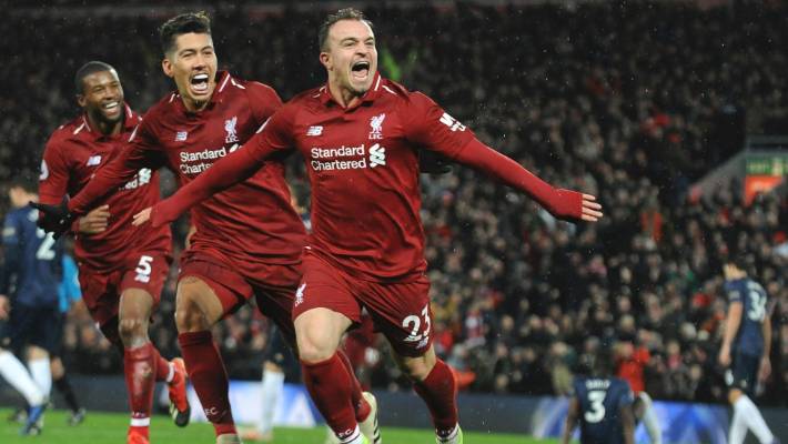 ការស៊ុតបាល់ផ្លាតចូលទី 2គ្រាប់របស់ខ្សែបម្រើ XherdanShaqiri បានជួយឱ្យក្រុម Liverpool យកឈ្នះលើក្រុម Manchester United ក្នុងការប្រកួតក្របខ័ណ្ឌ Premier League ជាលើកទី1ក្នុងចំណោមការជួបគ្នា9លើក ខណៈដែលក្រុមរបស់លោក Jurgen Klopp បានវិលទៅឈរលើកំពូលតារាងវិញ តាមរយៈការដណ្តើមបានជ័យជម្នះ 3-1 នាកីឡដ្ឋាន Anfield កាលពីថ្ងៃអាទិត្យ។
