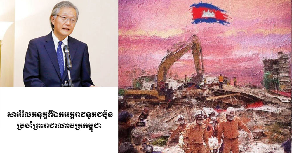 ឯកអគ្គរាជទូតជប៉ុន ប្រចាំកម្ពុជា បានសរសេរយ៉ាងដូច្នេះថា «ខ្ញុំមានអារម្មណ៍សោកស្តាយជាពន់ពេក ក្រោយពីបានទទួលព័ត៌មាន ស្តីពីឧបទ្ទវហេតុបាក់អាគារ ដែលបានកើតឡើង នៅថ្ងៃទី២២ ខែមិថុនា នៅខេត្តព្រះសីហនុ។ ខ្ញុំសូមចូលរួមរំលែកទុក្ខ ជាមួយក្រុមគ្រួសារជនរងគ្រោះ និងសូមបួងសួងឲ្យវិញ្ញាណក្ខន្ធ របស់ជនរងគ្រោះទៅកាន់សុគតិភព»។