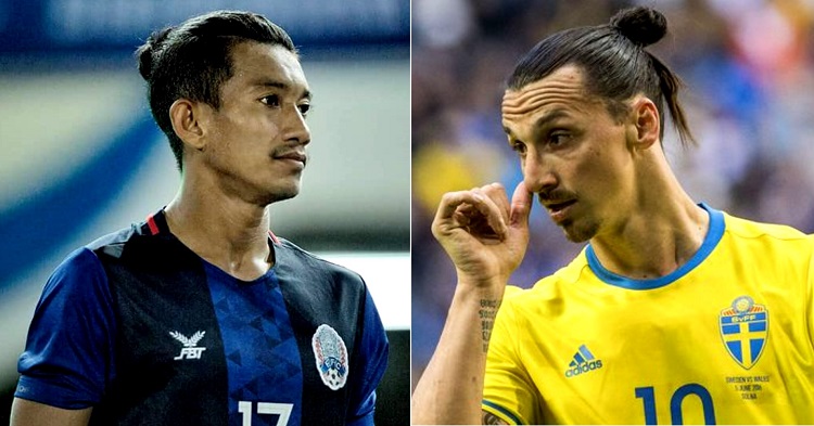 កីឡាករល្បឿនលឿនជម្រើសជាតិកម្ពុជា ឈិន ឈឿន ដែលពាក់អាវលេខ17 ក្នុងក្រុមជម្រើសជាតិកម្ពុជា ពិតជាមានសភាពដូចគ្នាទៅនឹងកីឡាករ ស៊ុយអែត Zlatan Ibrahimovic នៅពេលដែលពួកគេទាំង2 ធ្វើម៉ូដសក់បែបចងលើកទៅខាងក្រោយបែបនេះ។