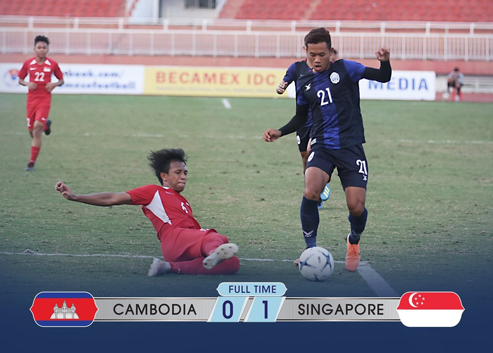 ក្រុមយុវជនគោព្រៃជម្រើសជាតិបាល់ទាត់អាយុក្រោម 18ឆ្នាំរបស់កម្ពុជា បានប្រកួតចាញ់ក្រុមបាល់ទាត់ជម្រើសជាតិសិង្ហបុរី កាលពីរសៀលថ្ងៃទី13 ខែសីហា ឆ្នាំ2019 កន្លងទៅនេះ ក្នុងពានរង្វាន់ជើងឯកយុវជនអាស៊ីអាគ្នេយ៍អាយុក្រោម 18ឆ្នាំ AFF U-18 Championship 2019។