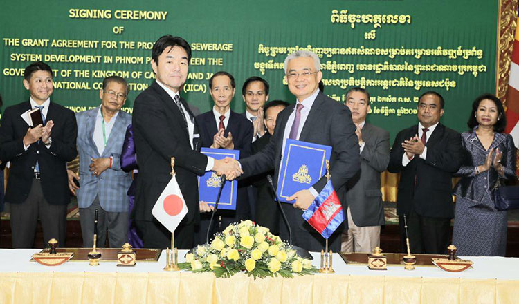 ឯកឧត្តមអគ្គបណ្ឌិតសភាចារ្យ អូន ព័ន្ធមុនីរ័ត្ន ឧបនាយករដ្ឋមន្ដ្រី រដ្ឋមន្រ្តីក្រសួងសេដ្ឋកិច្ច និងហិរញ្ញវត្ថុ បានចុះហត្ថលេខាលើកិច្ចព្រមព្រៀងហិរញ្ញប្បទានឥតសំណងមួយ ជាមួយលោក យូអិឈី ស៊ូហ្គាណូ (Yuichi SUGANO) ប្រធានតំណាងទីភ្នាក់ងារសហប្រតិបតិ្តការអន្តរជាតិ នៃប្រទេសជប៉ុន(JICA) កាលពីថ្ងៃទី1 ខែវិច្ឆិកា ឆ្នាំ2019 នៅទីស្ដីការក្រសួងសេដ្ឋកិច្ច ដែលមានទឹកប្រាក់តម្លៃប្រមាណ 27លានដុល្លារអាមេរិក សម្រាប់គម្រោងអភិវឌ្ឍន៍ប្រព័ន្ធបង្ហូរទឹកកខ្វក់ក្នុងរាជធានីភ្នំពេញ។