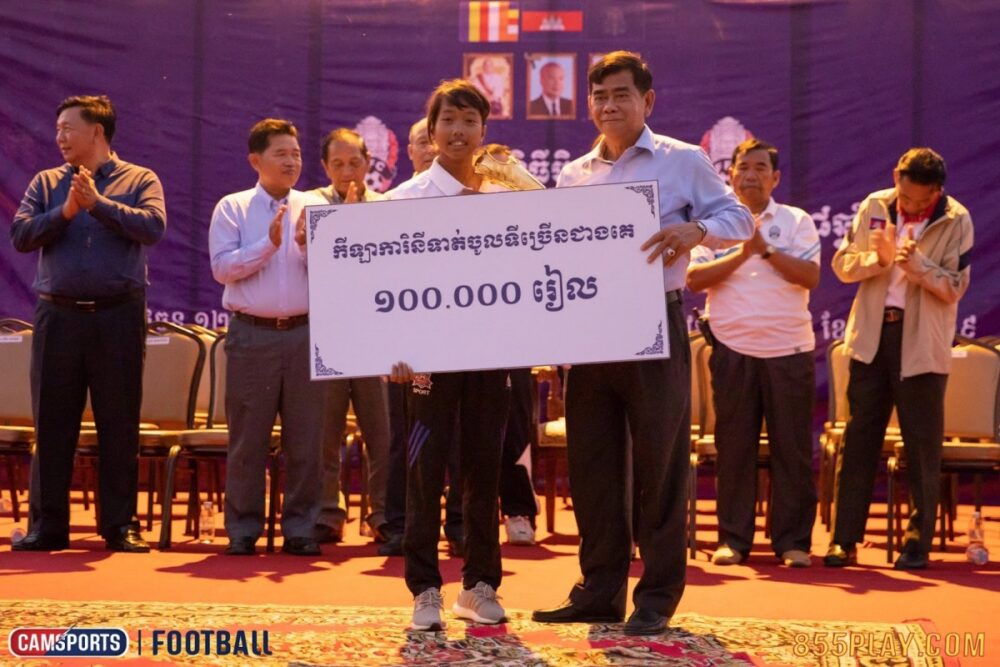 ក្រុមកីឡាការិនីមកពីខេត្តស្វាយរៀង ដែលទទួលបានជយលាភីជើងឯកក្នុងការប្រកួតជម្រើសជើងឯកបាល់ទាត់នារីឆ្នាំ2019 ដែលបានទទួលប្រាក់រង្វាន់ 4លានរៀល ខណៈដែលកីឡាការិនីដែលទាត់បាល់បញ្ចូលទីបានច្រើនជាងគេ និងកីឡាការិនីអ្នកចាំទីល្អជាងគេ ទទួលបានប្រាក់លើកទឹកចិត្តម្នាក់ 10ម៉ឺនរៀល។