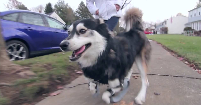 ឧបករណ៍ 3D ឈ្មោះថា Kevin Atkins និង Dave DiPinto និងអ្នកឯកទេសផលិតឧបករណ៍ទ្រដងខ្លួនសម្រាប់សត្វ លោក Derrick Campana បានសហការគ្នាផលិតចេញជាឧបករណ៍ 3D សម្រាប់បំពាក់នៅលើជើងខាងមុខរបស់សត្វសុនខ ដើម្បីអាចឱ្យវាដើរបានដូចសុនខ ដទៃទៀតបាន។