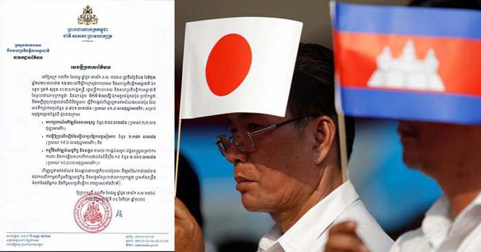 រដ្ឋាភិបាលជប៉ុនបានប្រកាសផ្តល់ជំនួយឥតសំណងដល់កម្ពុជាចំនួនប្រមាណ 4,501លានយ៉េន ឬស្មើនឹង 41.4លានដុល្លារអាមេរិក សម្រាប់អភិវឌ្ឍគម្រោង3សំខាន់។