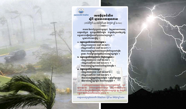 នឹងអាចមានភ្លៀងធ្លាក់ពីមធ្យមទៅខ្លាំង។ នៅលើផ្ទៃសមុទ្រ នឹងអាចមានភ្លៀងធ្លាក់ខ្លាំង និងរលកសមុទ្រខ្ពស់៕