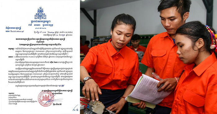តាមរយៈលិខិតដែលចេញដោយទីស្តីការគណៈរដ្ឋមន្ត្រីបានបញ្ជាក់ថា រាជរដ្ឋាភិបាលអនុញ្ញាតឱ្យបើកឡើងវិញនូវរោងជាង បន្ទប់ពិសោធន៍ មជ្ឈមណ្ឌលវាយតម្លៃសមត្ថភាព និងការប្រឡងបញ្ចប់ការពារសារណា ឬនិក្ខេបបទបញ្ចប់ការសិក្សា នៅគ្រឹះស្ថានអប់រំ បណ្តុះបណ្តាលបច្ចេកទេស និងវិជ្ជាជីវៈ ក្រោមឱវាទរបស់ក្រសួងការងារ និងបណ្តុះបណ្តាលវិជ្ជាជីវៈ។