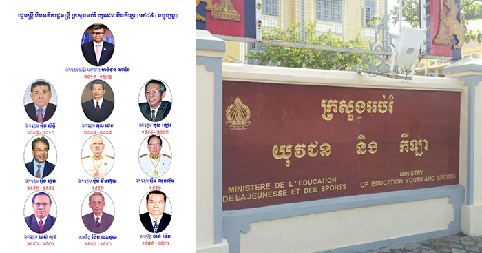 ថ្មីៗនេះក្រសួងអប់រំ យុវជន និងកីឡា បានបង្ហាញពីសមាសភាពរបស់រដ្ឋមន្ត្រីនៃក្រសួងអប់រំ យុវជន និងកីឡា ចាប់តាំងពីការដួលរលំរបបកម្ពុជាប្រជាធិបតេយ្យ ឆ្នាំ1979 រហូតមកដល់បច្ចុប្បន្ននេះ។ រដ្ឋមន្ត្រីនៃក្រសួងអប់រំ យុវជន និងកីឡា មានសមាសភាពដូចជា៖