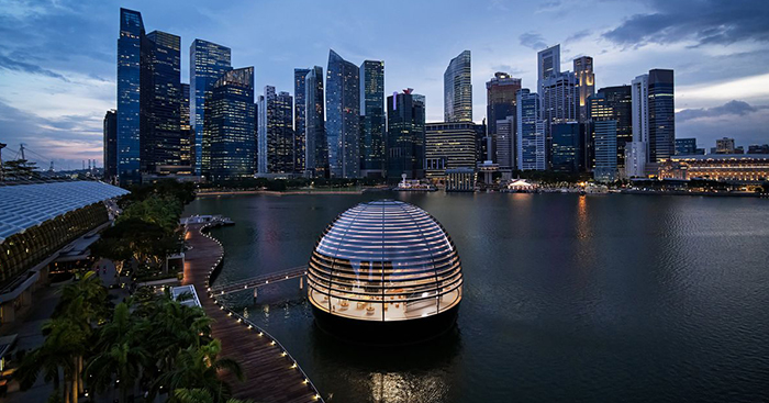 ហាង អណ្ដែតទឹក Apple Store មួយនេះ ស្ថិតនៅទល់នឹងមុខ Marina Bay Sands ដែលជាសណ្ឋាគារដ៏ល្បីបំផុតប្រចាំប្រទេសសិង្ហបុរី។ រយៈពេលនៃការសាងសង់ គឺប្រមាណជា 2ឆ្នាំមកហើយ។ សូមជម្រាបជូនផងដែរថា Apple Store បើកជាលើកដំបូងនៅប្រទេសសិង្ហបុរី ក្នុងឆ្នាំ2017 នៅលើវិថី Orchard Road បច្ចុប្បន្នកំពុងដំណើរការ៕