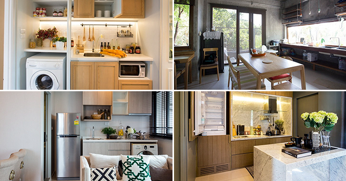 – បន្ទប់ចង្រ្កានបាយតូច តែមួយជ្រុង ៈ បន្ទប់ផ្ទះបាយខ្នាតតូចក្នុងបរិយាកាសពណ៌ឈើធម្មជាតិ មានទីធ្លាប្រើប្រាស់ត្រឹមតែបន្តិចបន្តួច តែក៏មានឧបករណ៍គ្រប់សម្រាប់រាល់ការប្រើការ។ ដោយចាប់ផ្ដើមពីការច្នៃម៉ូដឱ្យក្លាយជាបន្ទប់ផ្ទះបាយតែមួយជ្រុងជាប់ជញ្ជាំង ក្រាលឥដ្ឋការ៉ូពណ៌ឈើធម្មជាតិ។ ខាងក្រោមតុដាក់ម៉ាស៊ីនបោកខោអាវខ្នាតមីនីសន្សំសំចៃទីកន្លែង អាងលាងចានតូចមួយ និងឆ្នាំងម៉ៃក្រូវេហ្វអាចដាក់នៅលើតុខោនធើរផ្ទះបាយបាន។ ធ្វើបង្កាន់ដៃដែកអ៊ីណុកជាប់ជញ្ជាំងទុកព្យួរឧបករណ៍ផ្ទះបាយដែលត្រូវប្រើជាប្រចាំ គ្រឿងបន្ថែមរសជាតិដាក់តម្រៀបជាជួរស្រេច និងទូជាប់ជញ្ជាំងសម្រាប់ទុកដាក់ចានក្បាន។