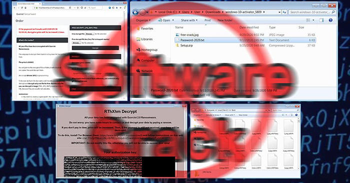 ជាឧទាហរណ៍ជនអនាមិកបានផ្សព្វផ្សាយនៅក្នុងគេហទំព័រមួយថាមានកម្មវិធីសម្រាប់ Windows 10 Activator 2020 ដែលអាចឱ្យលោកអ្នកបញ្ចូលកម្មវិធី Windows 10 ដោយមិនចាំបាច់ចំណាយលុយ។ ប៉ុន្តែប្រសិនបើលោកអ្នកទាញយកហើយបើកកម្មវិធីនោះ វានឹងអ៊ិនគ្រីប (encrypted) ឯកសារទាំងអស់នៅក្នុងកុំព្យូទ័រ ហើយអ្វីដែលលោកអ្នកអាចបើកបានគឺជាឯកសារមួយដែលប្រាប់លោកអ្នកឱ្យបង់ប្រាក់ចំនួនពី ២៥០ដុល្លាររហូតដល់ ១០,០០០ដុល្លារ ដើម្បីអាចបើកឯកសារទាំងនោះបានឡើងវិញ។