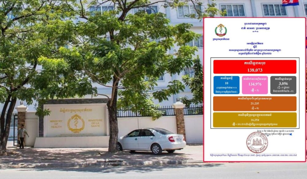 ក្រសួងសុខាភិបាលកម្ពុជា បានរកឃើញអ្នកឆ្លងកូវីដ-19 ករណីថ្មី ចំនួន 10 នាក់ ក្នុងអំឡុង 24 ម៉ោង នៃថ្ងៃទី 27 ខែវិច្ឆិកា ឆ្នាំ 2022។