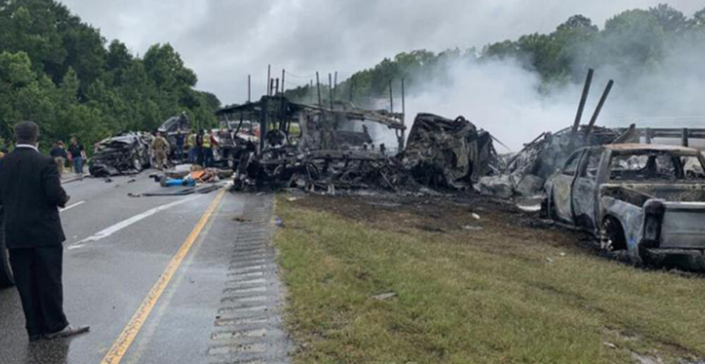 គ្រោះថ្នាក់ចរាចរណ៍នេះ កើតឡើងនៅលើផ្លូវ I-65 នៅក្នុងស្រុក Butler កាលពីថ្ងៃទី19 ខែមិថុនា ដោយសារតែមានភ្លៀងធំដែលកើតពីសម្ពាធទាប ក្រោយពីមានព្យុះ Claudette ក្នុងរដ្ឋ Alabama។