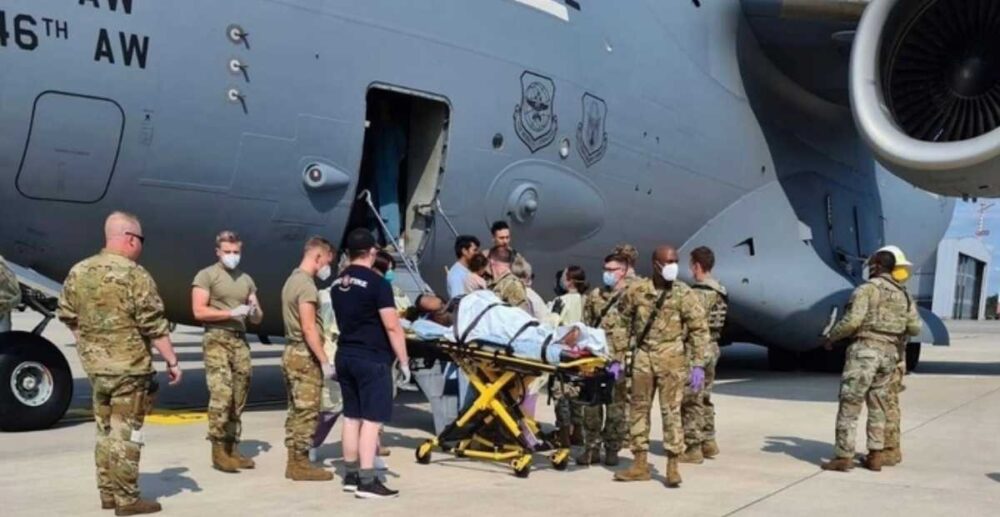 ស្ត្រីជាម្ដាយចាប់ផ្ដើមឈឺពោះកាលពីថ្ងៃទី 21 សីហា ក្នុងដំណើរពី កាប៊ុល ទៅកាន់មូលដ្ឋានទ័ព សហរដ្ឋអាមេរិក នៅប្រទេសអាល្លឺម៉ង់។ ក្នុងពេលកំពុងចុះចត បុគ្គលិកពេទ្យយោធា បានជួយដល់ការសម្រាលកូននៅក្នុងបន្ទប់យន្តហោះ។ បន្ទាប់មក ទាំងម្ដាយ ទាំងកូន ត្រូវបានបញ្ជូនទៅ កាន់មន្ទីរពេទ្យនៅក្បែរនោះ។