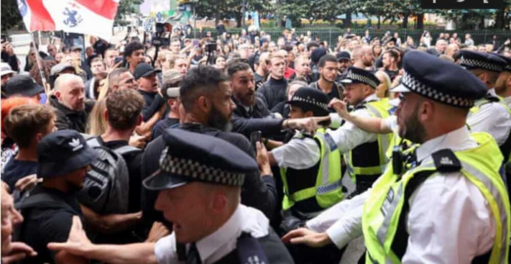 យ៉ាងហោចមានសមត្ថកិច្ច 4 នាក់ ត្រូវរងរបួស និងបាតុករច្រើននាក់ត្រូវបានចាប់ខ្លួន ខណៈមនុស្សរាប់រយនាក់ប្រមូលផ្ដុំគ្នាតវ៉ានៅខាងក្រៅការិយាល័យគ្រប់គ្រងឱសថ និងផលិតថែទាំសុខភាព របស់ អង់គ្លេស (MHRA) នៅតំបន់ Canary Wharf ភាគខាងកើតទីក្រុងឡុងដ៍ កាលពីថ្ងៃទី 3 កញ្ញា។