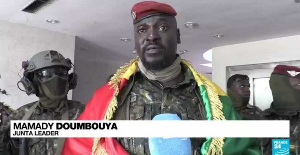 Doumbouya កាលពីថ្ងៃទី 5 កញ្ញា បានប្រកាសរំលាយរដ្ឋធម្មនុញ្ញ រំលាយរដ្ឋាភិបាល បិទព្រំដែន និងដាក់បម្រាមគោចរ 24 ម៉ោង។ អ្នកទោសនយោបាយទាំងអស់នឹងត្រូវបានដោះលែង ហើយដំណើរការនៃប្រគល់អំណាចដែលអូសបន្លាយ 18 ខែ នឹងត្រូវបានចាប់ផ្ដើម ក្រោមការគ្រប់គ្រងរបស់គណៈកម្មការផ្សះផ្សា និងអភិវឌ្ឍជាតិថ្មី។