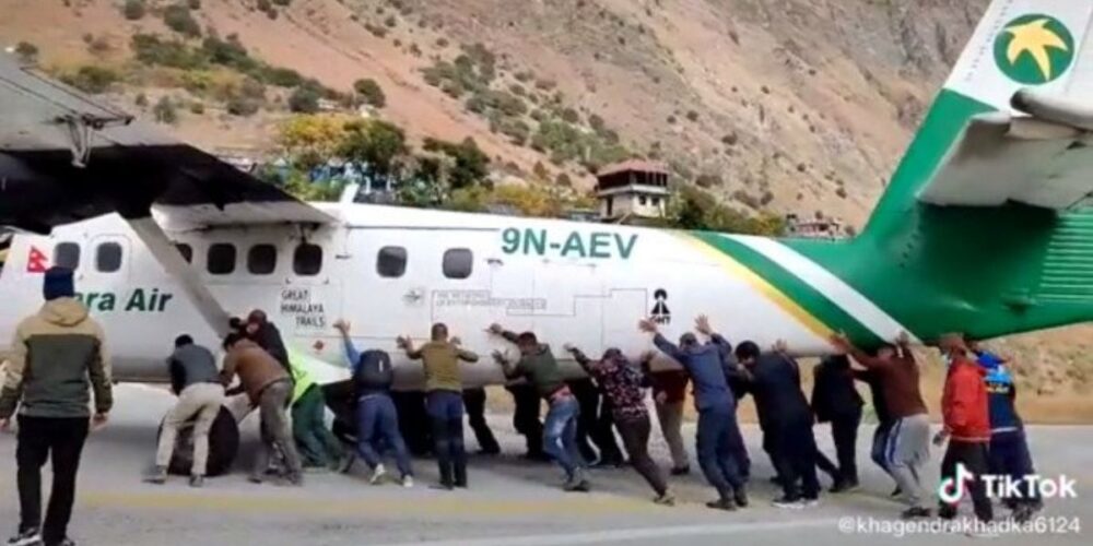 យន្តហោះ 9N AVE របស់ក្រុមហ៊ុនអាកាសចរណ៍ Tara Air បានបែកកង់កាលពីថ្ងៃទី ១ ធ្នូ និងធ្វើឱ្យស្ទះផ្លូវរត់។ វីដេអូដែលថតបានសកម្មភាព បង្ហាញថា អ្នកដំណើរប្រហែល ២០ នាក់ រួមនឹងក្រុមសន្តិសុខ បាននាំគ្នាជួយរុញយន្តហោះចេញពីផ្លូវរត់។ វីដេអូនេះ ក្រោយមកក៏ត្រូវបានគេចែករំលែកពេញបណ្ដាញសង្គម ជាមួយនឹងមតិ៖ «ប្រហែលមានតែនៅ នេប៉ាល់ ប៉ុណ្ណោះ»។