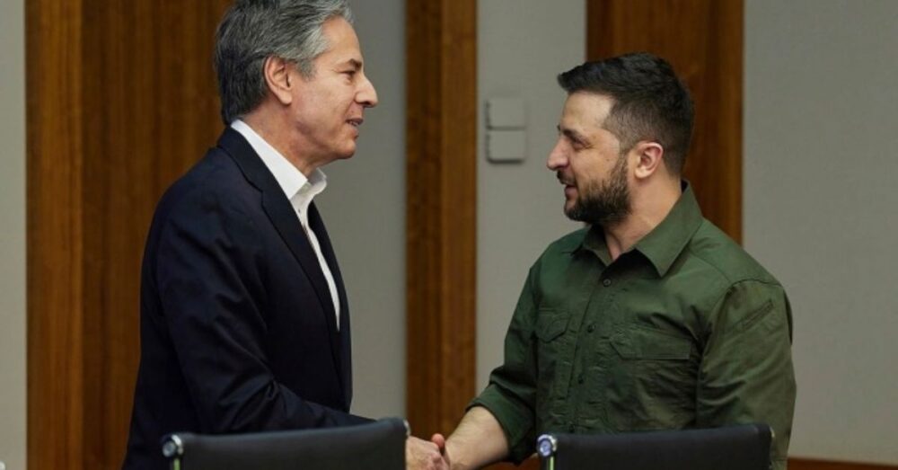 រដ្ឋមន្ត្រីការបរទេសអាម៉េរិក លោក អង់តូនី ប្លីនខេន (Antony Blinken) ឱ្យដឹងថា លោក និងរដ្ឋមន្ត្រីការពារជាតិ ឡយ អូស្ទីន (Lloyd Austin) បានពិភាក្សាគ្នារយៈពេល ៣ ម៉ោង ជាមួយ ប្រធានាធិបតីអ៊ុយក្រែន លោក វ៉ូឡូឌីមៀ ហ្សេឡែនស្គី រួមជាមួយនឹងក្រុមទីប្រឹក្សាជាន់ខ្ពស់របស់លោក នៅ រដ្ឋធានីកៀវ ក្នុងដំណើរទស្សនកិច្ចសម្ងាត់មួយកាលពីថ្ងៃទី ២៤ មេសា។