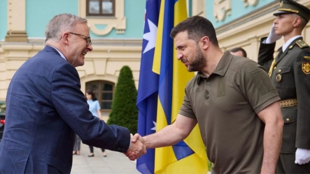 កាលពីព្រលប់ថ្ងៃទី ៣ កក្កដា (ម៉ោងនៅ អូស្ត្រាលី) នាយករដ្ឋមន្ត្រី អាន់ថូនី អាល់បានីស (Anthony Albanese) បានបំពេញទស្សនកិច្ចភ្លាមៗទៅកាន់ អ៊ុយក្រែន និងមានជំនួបរយៈពេល ២ ម៉ោង ជាមួយ ប្រធានាធិបតី ហ្សេឡែនស្គី នៅ រដ្ឋធានីកៀវ។ លោកនាយករដ្ឋមន្ត្រីអូស្ត្រាលី ក៏បានធ្វើទស្សនកិច្ចទៅកាន់តំបន់ក្បែរខាងដែលបានរងការខូចខាតដោយសារសង្គ្រាម។