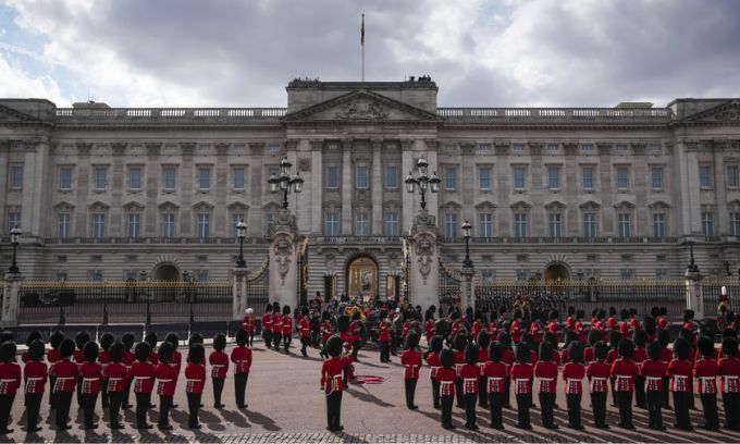 ព្រះសពរបស់អតីតមហាក្សត្រីអង់គ្លេស Elizabeth II កាលពីម្សិលមិញ (១៤ កញ្ញា) ត្រូវបានតម្កល់លើព្រះទីន័ងដែលមានសេះ ៧ ក្បាលជាអ្នកអូស ចេញដំណើរពីរាជវាំង Buckingham នៅក្រុងឡុងដ៍ ចក្រភពអង់គ្លេស។ រៀងរាល់ ១ នាទី ក្រុមទាហានបាញ់កាំភ្លើងធំ ១ គ្រាប់ពីឧទ្យាន Park Hyde ក្នុងពេលដង្ហែព្រះសព។