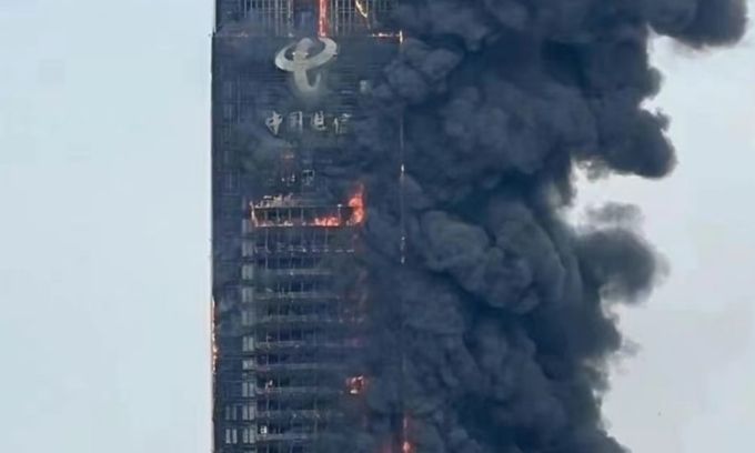 ផ្សែងខ្មៅយ៉ាងក្រាស់បាញ់ចេញពីអគារ China Telecom0728.HK កម្ពស់ ២០០ ម៉ែត្រ និងរាប់សិបជាន់កំពុងឆេះយ៉ាងសន្ធោសន្ធៅ» ទូរទស្សន៍រដ្ឋចិន CCTV រាយការណ៍នាថ្ងៃនេះអំពីករណីអគ្គិភ័យឆេះអគារកប់ពពកមួយនៅក្នុងទីក្រុង Changsha នៃខេត្ត Hunan ភាគកណ្ដាល ប្រទេសចិន។