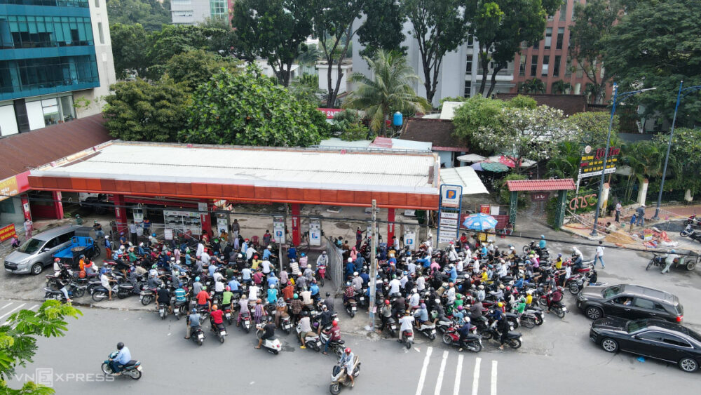 ដោយសារតែមិនមានទំនិញបន្ថែម ស្ថានីយប្រេងសាំងនានានៅ ទីក្រុងហូជីមិញ កំណត់ឱ្យលក់តែប្រហែល ២០,០០០ ដុងប៉ុណ្ណោះសម្រាប់ម៉ូតូមួយគ្រឿង។ យោងតាមបុគ្គលិកនៅស្ថានីយប្រេងសាំងមួយកន្លែង កាលពីម្សិលមិញ ពួកគេប្រកាសថា «ម៉ូតូមួយគ្រឿងអាចចាក់សាំងបានត្រឹម ៣០,០០០ ដុង» ប៉ុន្តែ ព្រឹកនេះ ត្រូវប្ដូរមក ២០,០០០ ដុង ដោយសារតែខ្វះទំនិញ។