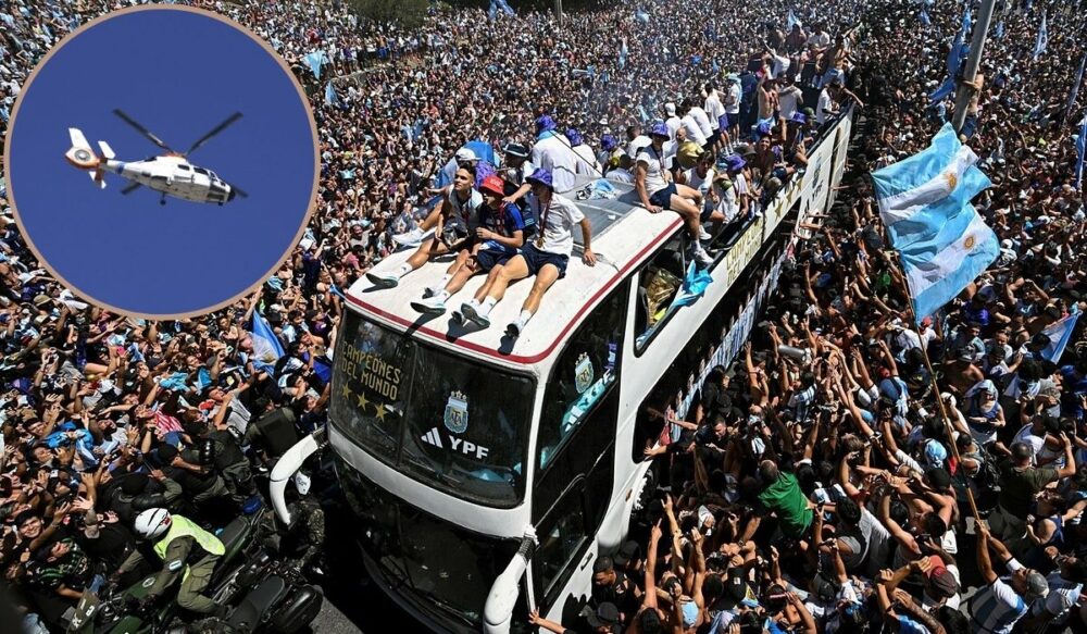 Messi និងក្រុមជម្រើសជាតិអាហ្សង់ទីន ត្រូវបោះបង់ការហែក្បួនដោយរថយន្តក្រុងគ្មានដំបូល និងឡើងឧទ្ធម្ភាគចក្រហោះពីលើរដ្ឋធានី ដោយសារមនុស្សរាប់លាននាក់ចេញដើរតាមដងផ្លូវចូលរួមអបអរសាទរជើងឯក World Cup 2022។