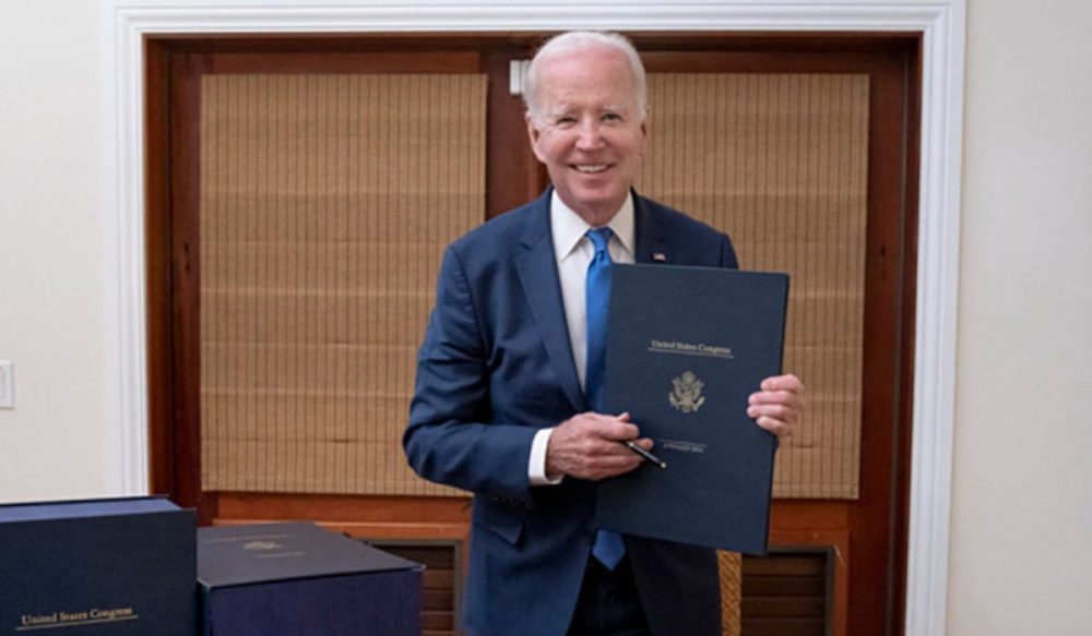 បុគ្គលិករបស់ សេតវិមាន បាននាំយកឯកសារកម្រាស់ 4,000 ទំព័រនេះទៅជូនដល់ដៃប្រធានាធិបតីនៅ St. Croix ហើយក៏ត្រូវបានចុះហត្ថាលេខាកាលពីថ្ងៃទី 29 ធ្នូ 2022។ បើសិនមិនត្រូវបានលោក បៃដិន ចុះហត្ថលេខាយឺតបំផុតត្រឹមថ្ងៃទី 31 ធ្នូនោះទេ រដ្ឋាភិបាលអាម៉េរិក នឹងត្រូវបិទទ្វារ ខណៈត្រូវរង់ចាំការចាត់ចែងថវិកាជាតិសម្រាប់ឆ្នាំក្រោយ។