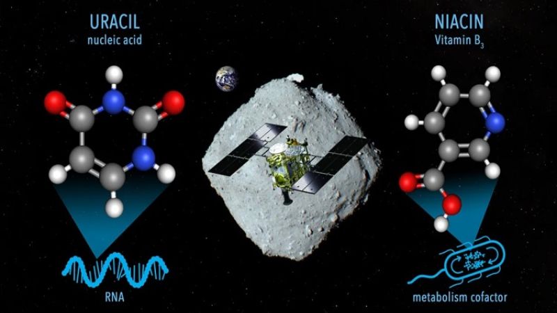 ក្រុមអ្នកស្រាវជ្រាវបានវិភាគទៅលើសំណាកដីរបស់អាចម៍ផ្កាយ Ryugu ដែលយាន Hayabusa2 របស់ទីភ្នាក់ងារអវកាសជប៉ុនប្រមូលបាន និងរកឃើញ uracil ដែលជាឯកតាមួយក្នុងចំណោមឯកតាព័ត៌មានដែលបង្កើតបានជា RNA ជាម៉ូលេគុលផ្ទុកការបញ្ជាក់អំពីវិធីកកើត និងសកម្មភាពរបស់សត្វមានជីវិត។