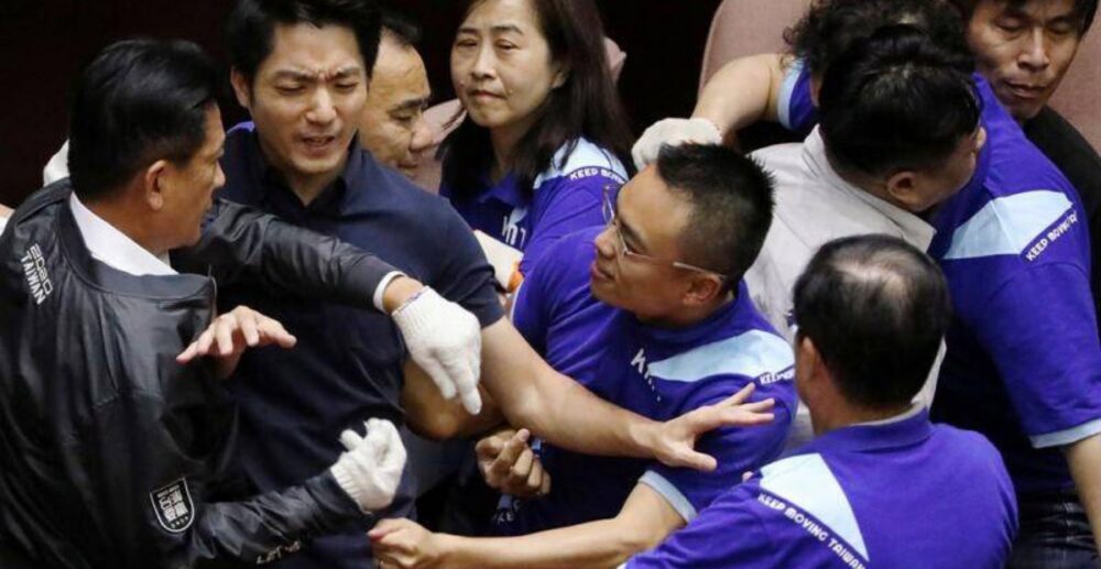 រូបភាពពីខាងក្នុងអគាររដ្ឋសភាបានបង្ហាញថា តំណាងរាស្ត្រម្នាក់របស់បក្ស DPP បានដាល់ទៅលើសមាជិកម្នាក់របស់ក្រុមប្រឆាំង នៅក្នុងពេលបោះឆ្នោតជ្រើសរើសលោកស្រី Chen Chu។ ក្រុមតំណាងរាស្ត្ររបស់បក្ស KMT ក៏បានគប់ប៉ោងប៉ោងទឹកទៅលើវេទិកា នាំឱ្យក្រុម DPP ត្រូវប្រើប្រាស់អាវភ្លៀង និងក្រដាសរឹងដើម្បីទប់ទល់។