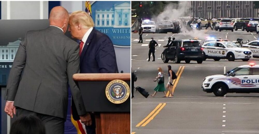 លោកប្រធានាធិបតី ដូណាល់ ត្រាំ នៃសហរដ្ឋអាមេរិក ត្រូវបានក្រុមអង្គរក្សប្រធានាធិបតី ឬអង្គភាព Secret service នាំខ្លួនចេញពីបន្ទប់ថ្លែងព័ត៌មានយ៉ាងប្រញាប់ប្រញាល់ កាលពីថ្ងៃម្សិលមិញ(ទី10សីហា) បន្ទាប់ពីមានកើតហេតុការណ៍បាញ់ប្រហារគ្នានៅខាងក្រៅមន្ទីរសេតវិមាន។