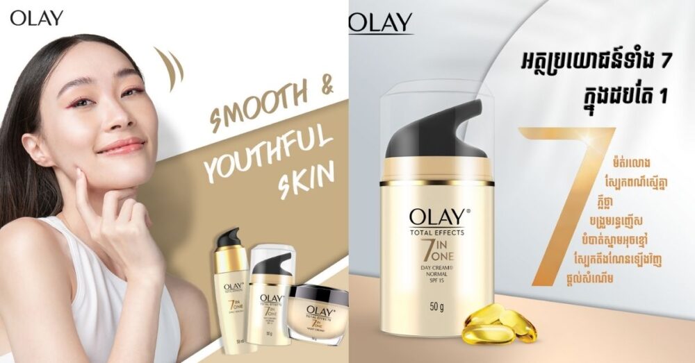 ជូនដល់នារីខ្មែរទាំងអស់ដែលបានអានសារនេះ ចូរចាំអាយុគ្រាន់តែជាតួលេខប៉ុណ្ណោះ ហើយកុំព្រួយបារម្ភវ័យរបស់យើង។ មានមោទនភាពចំពោះខ្លួនឯង មានទំនុកចិត្តលើខ្លួនឯង ហើយកុំឈប់ដើរតាមក្ដីសុបិន្ត។ Olay Total Effects ជួយផ្តល់អោយអ្នកនូវស្បែកក្មេងជាងវ័យ និងភ្លឺចែងចាំង – ដូច្នេះភាពជ្រីវជ្រួញ ឬភាពស្ងួតមិនអាចរារាំងអ្នកពីភាពលេចធ្លោបានទេ!