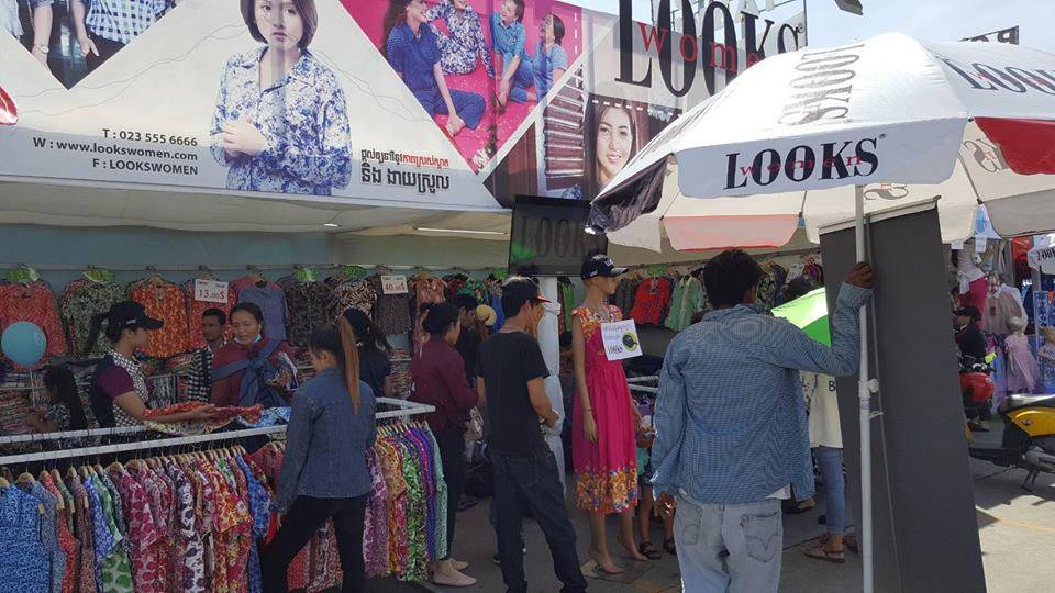 ជាមួយនឹងកម្មវិធីលក់បញ្ចុះតម្លៃនេះ លោកអ្នកអាចស្វែងរកទិញសម្លៀកបំពាក់ដ៏ស្រស់ស្អាតជាច្រើនម៉ូដ ច្រើនឈុត យ៉ាងសម្បូរបែប ដែលតាំងលក់នៅស្ដង់ LOOKSWOMEN នៅកោះពេជ្រ ស្ថិតនៅជិតឆាកប្រគុំតន្រ្តីរបស់ក្រុមហ៊ុនស្រាបៀរកម្ពុជា។