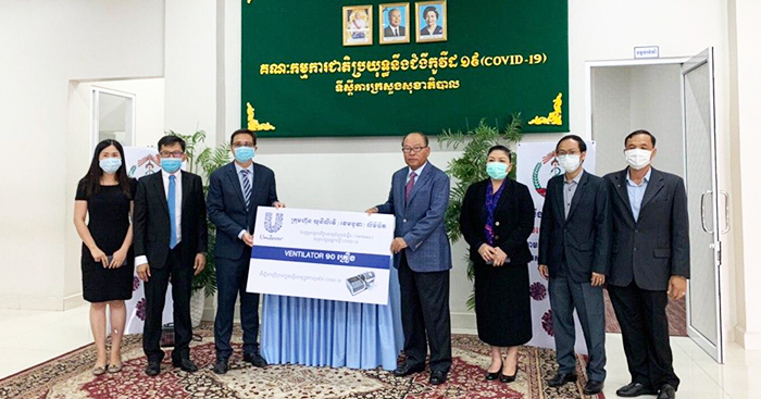 ភ្នំពេញ ថ្ងៃទី២០ ខែឧសភា ឆ្នាំ២០២០៖ ក្រុមហ៊ុន យូនីលីវើ (ខេមបូឌា) លីមីធីត នៅថ្ងៃទី២០ ខែឧសភានេះបានឧបត្ថម្ភឧបករណ៍ជំនួយដង្ហើម (Ventilator) ចំនួន១០គ្រឿង ដល់ក្រសួងសុខាភិបាល ដើម្បីចូលរួមជាមួយរាជរដ្ឋាភិបាលនៅក្នុងការខិតខំប្រឹងប្រែងដោះស្រាយបញ្ហាជម្ងឺរាតត្បាត Covid-19។ ពិធីប្រគល់សម្ភារបរិក្ខារពេទ្យនេះ ត្រូវបានធ្វើឡើងនៅទីស្តីការក្រសួង ដោយមានវត្តមានឯកឧត្តមរដ្ឋមន្រ្តី ម៉ម ប៊ុនហេង អញ្ជើញចូលរួម។