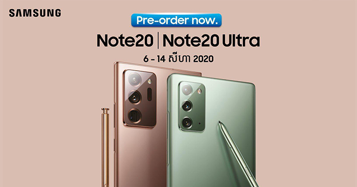 អធិរាជមហាអំណាចស្មាតហ្វូបប៊ិក Samsung Galaxy Note 20 និង Note 20 Ultra នឹងដាក់ឱ្យអតិថិជនដែលកំពុងរង់ចាំយ៉ាងអន្ទះសារដ៏ច្រើនលើសលុបទាំងអស់ក្នុងប្រទេសកម្ពុជាធ្វើការកម្ម៉ង់ទិញទុកមុន (Pre-order) នៅ ថ្ងៃទី០៦ ដល់ថ្ងៃទី ១៤ ខែសីហា ២០២០ ជាមួយនឹងការថែមជូនដ៏សម្បើមអស្ចារ្យមិនធ្លាប់មានដូចជា៖