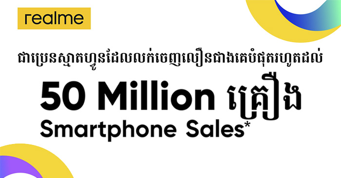 មានការលក់ចេញលឿនបំផុតនៅលើពិភពលោក រហូតដល់៥០លានគ្រឿង realmeបានជាប់ចំណាត់ថ្នាក់ទី៧ក្នុងពិភពលោក